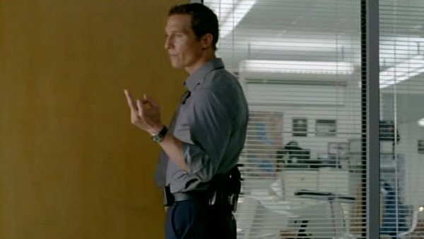 Let’s talk about Rust Cohle, who we see continuing to investigate as Marty drops back into his old habits. Rust–who’s passive except during his case work, which is an important thing to remember later on–drops by Theriot, Kelly, Charmaine, and Tuttle, and each interaction adds to a character who eventually winds up in a room with Maggie Hart. This is a huge scene for the both of them, and it all revolves around the idea of loss. When Maggie does this, she’s adding onto this world of pain and loss, crossing a threshold that both of them know that, to Marty, is unforgivable. Part of Rust allows allows her to take what she wants because it seems as if, just for a split second, there’s a moment of relief for him, a moment where he can succumb to his desires, a moment where he also knows she’s going to be able to break free. This is a completely logical decision for her because for a guy like Marty, this is the only way to do it.