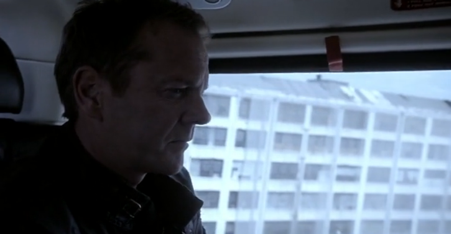There’s one moment, though, when he nearly loses himself, and that’s when he finds out about Audrey’s death. It’s a fantastic, moving performance by Kiefer Sutherland, and as Jack slumps down to the ground, his expression speaks of horror and grief and guilt and loss. He’s rattled to the bone, stopped dead in his tracks, and we get the sense that escape would feel like a cold drink on a hot summer day; the scene intends to evoke an image of a man close to ending his own life, after all. It’s certainly something Jack’s contemplating, but then, he’s reminded of his place in the world, and the grief transforms into rage as he mows down as many baddies as possible before decapitating Cheng.