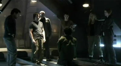 These personal conflicts are played out on an even larger scale in “Collaborators” with The Circle, a group of six jurors who vote on whether or not supposed Cylon collaborators should be put to death. They attempt to maintain some sense of honor and order, but in reality, we all know that they’re not impartial. There’s no way they can handle this fairly because the presumption of guilt takes precedence over any presumption of innocence; so, the question is whether the context here dictates the law or whether our notions of the law transcend the context. Gaeta sees clearly that his former friends have already convinced themselves of his guilt, so all he says is “I did the best I could”. In this moment, he’s also doing the best he can.