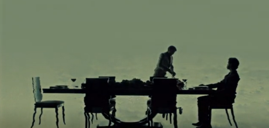 “Dolce” is about the attempted separation of that blurred identity, which definitely has been a struggle for both of them on their roads to attempted murder. Early on in the episode, Will states that “part of [himself] will always want to [slip away with Hannibal]”, and the response he gets is telling: “you’ll have to cut that part out.” Interestingly enough, Hannibal literally cuts into Will late in the episode, beginning to sever ties in preparation for the upcoming meal; what ends up happening, though, is actually one of the more powerful “Will is like Hannibal images”: the one used to close out the episode, the one in which Hannibal and Will are hanging upside down and side by side at Muskrat Farm.